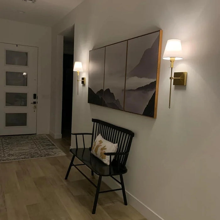 This wireless wall lamp with rechargeable battery combines timeless elegance with modern convenience. Designed without cables, it can be placed anywhere – indoors or outdoors – offering flexible lighting exactly where you need it. Its fabric shade and refined finish make it a perfect decorative accent for contemporary interiors such as bedrooms, living rooms, or reading corners.