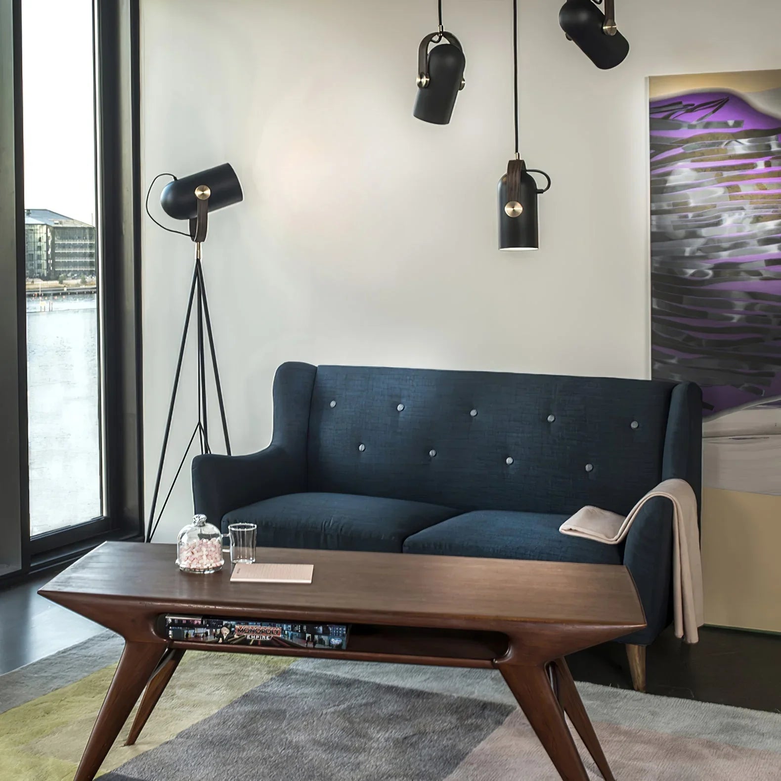 This minimalist pendant light stands out with its unique design, combining a matte metal shade with a refined wooden detail. Its industrial form, softened by a subtle retro accent, makes it a perfect fit for loft-style, modern, or Scandinavian interiors. Ideal for hanging above a coffee table, in the living room, bedroom, or in commercial settings such as cafés and boutique hotels.